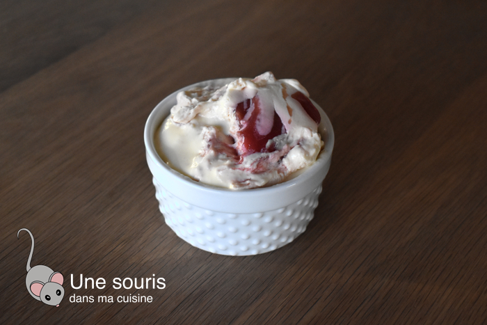 Pour rappeler le blanc de la neige, je vous propose une recette de mousse marbrée aux framboises. Cette recette est tirée du magazine Ricardo volume 23, numéro 1.