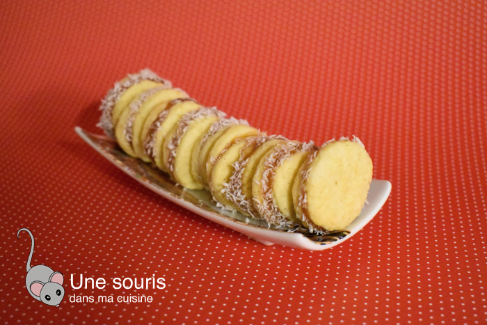 Prendre un biscuit et déposer environ 1 cuillère à thé de dulce de leche. Couvrir d’un second biscuit et rouler le bord des biscuits dans la noix de coco. Répéter l’opération jusqu’à épuisement des biscuits.