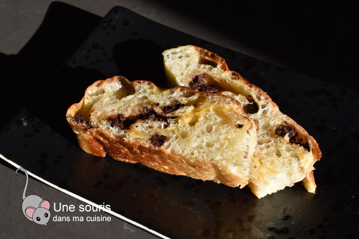 Pour rester dans la thématique du levain, je vous propose une recette de focaccia sans pétrissage à la confiture et au chocolat. J’ai pris cette recette sur le site de Mordu.
