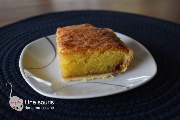 *J’ai utilisé de la confiture d’abricot, donc les marbrures sont moins apparentes que si j’avais utilisé une confiture rouge ou violacée.