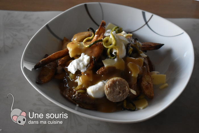 Pour aujourd’hui, je vous propose une recette de poutine aux légumes et aux saucisses. J’ai pris cette recette dans le livre À la plaque de Ricardo Larrivée.